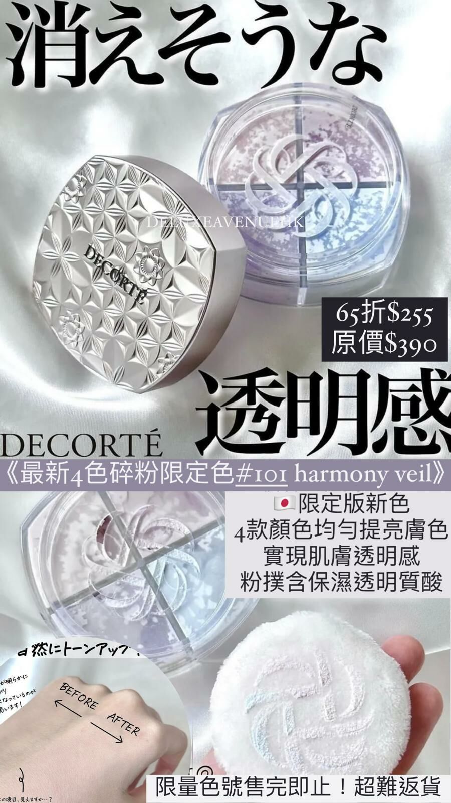 宛如上乘絲綢般輕柔的觸感,仿佛融化般柔潤地貼合於肌膚。輕盈地遮蓋毛孔,令肌膚光滑得足以讓人見之傾心。保持好似素顏般自然卻又擁有細膩肌理的勻淨妝容。