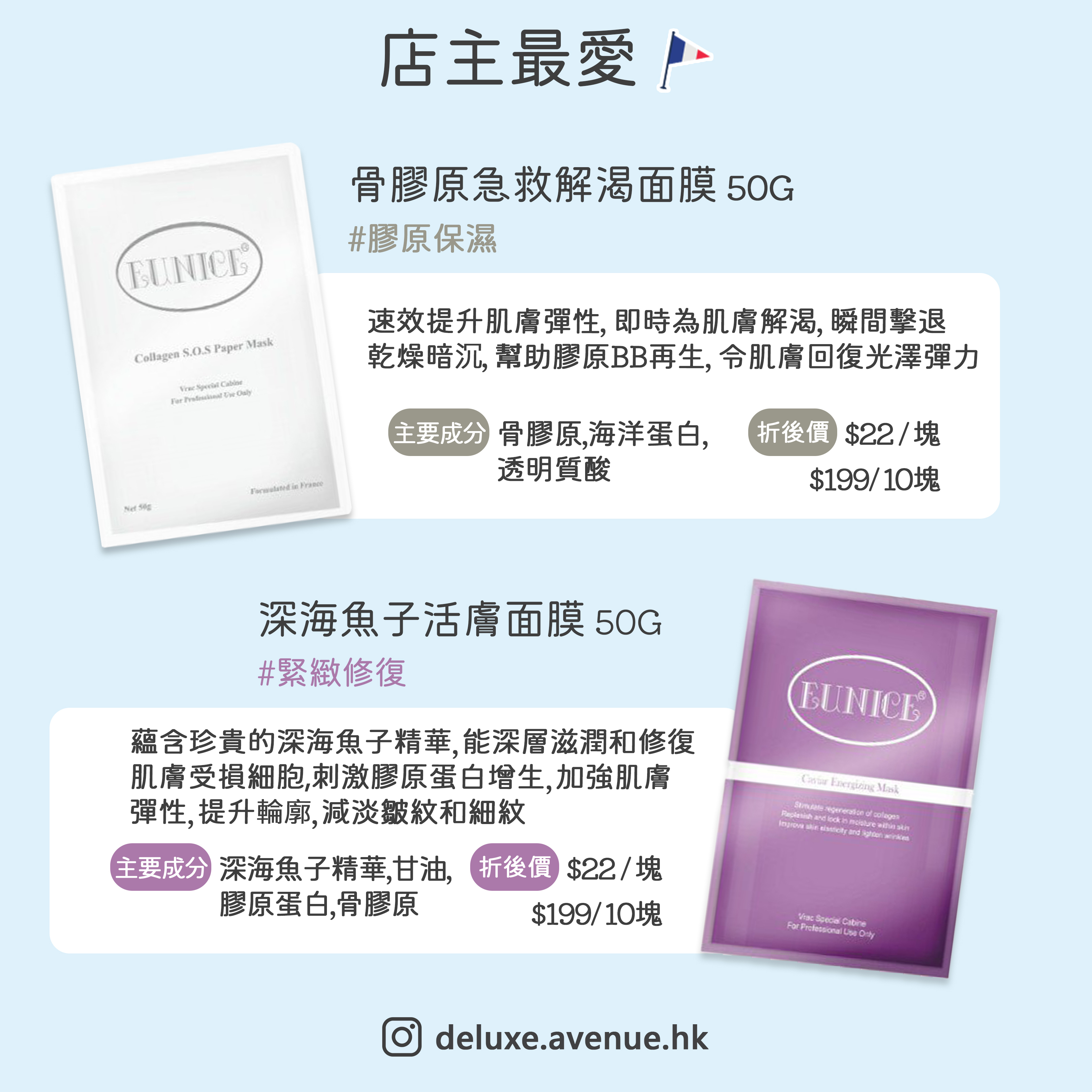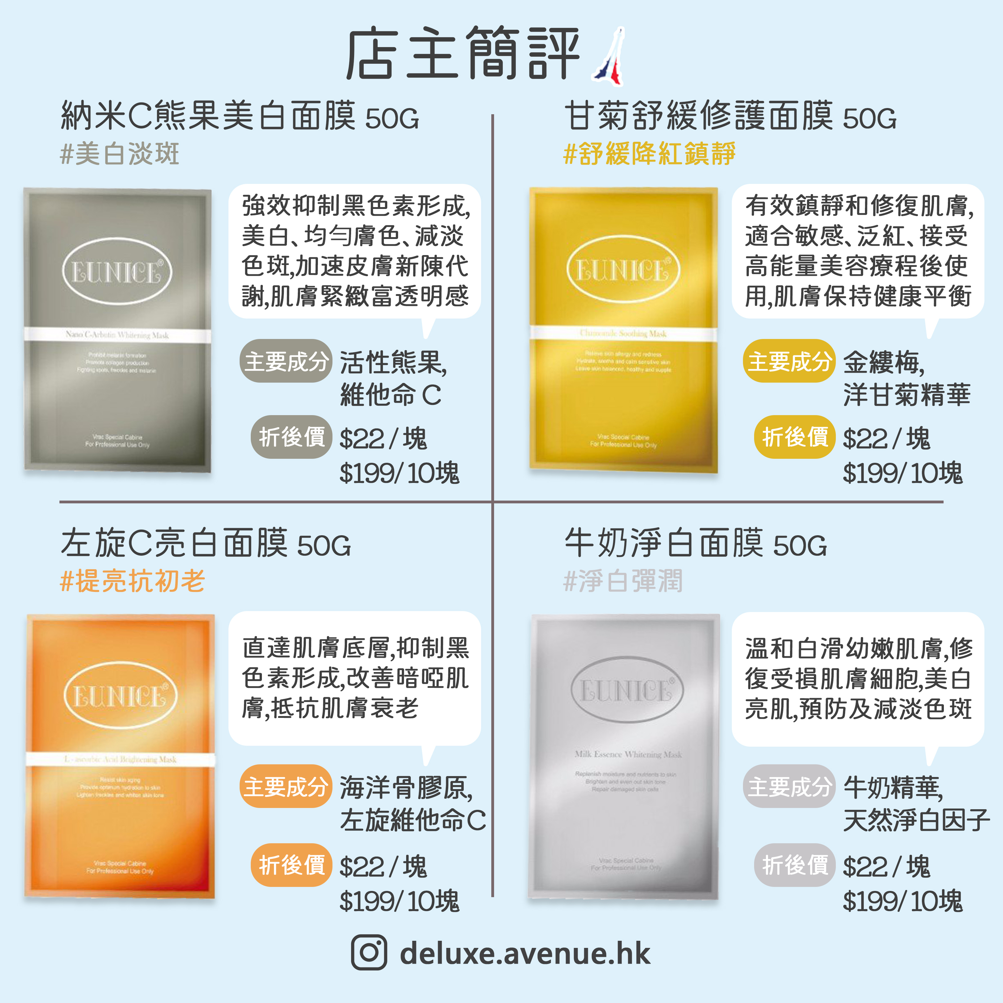 【🌟法國美容院級品牌-Eunice 多款不同功效面膜上線🌟 】